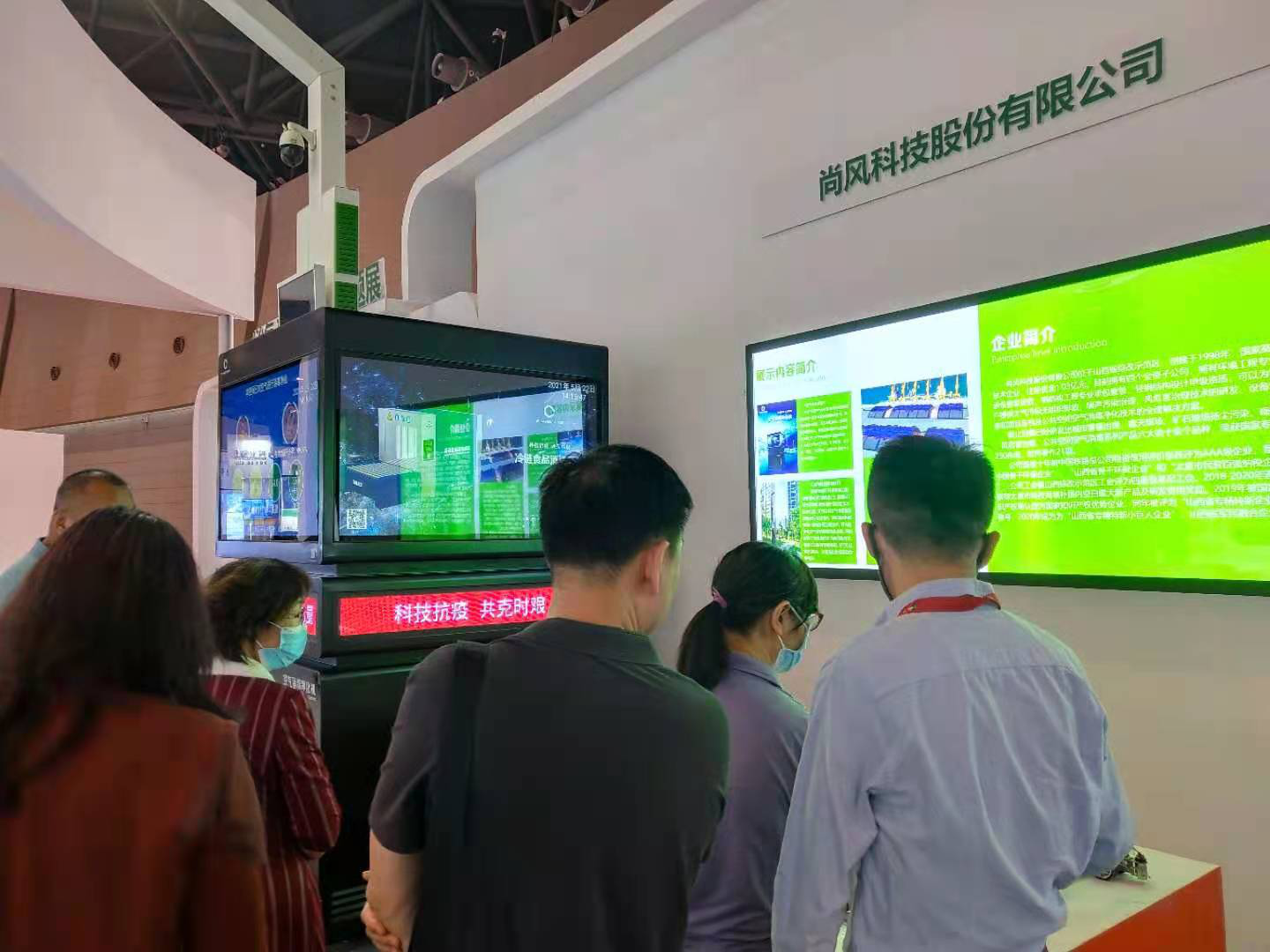 尚风科技携“空气净化消毒机”、 “可移动全封闭煤仓”和“智慧除霾灯杆”等展品亮相生态环保展区, 为中博会增添一抹来自山西的环保亮色, 吸引众多意向客户和观众的驻足咨询。